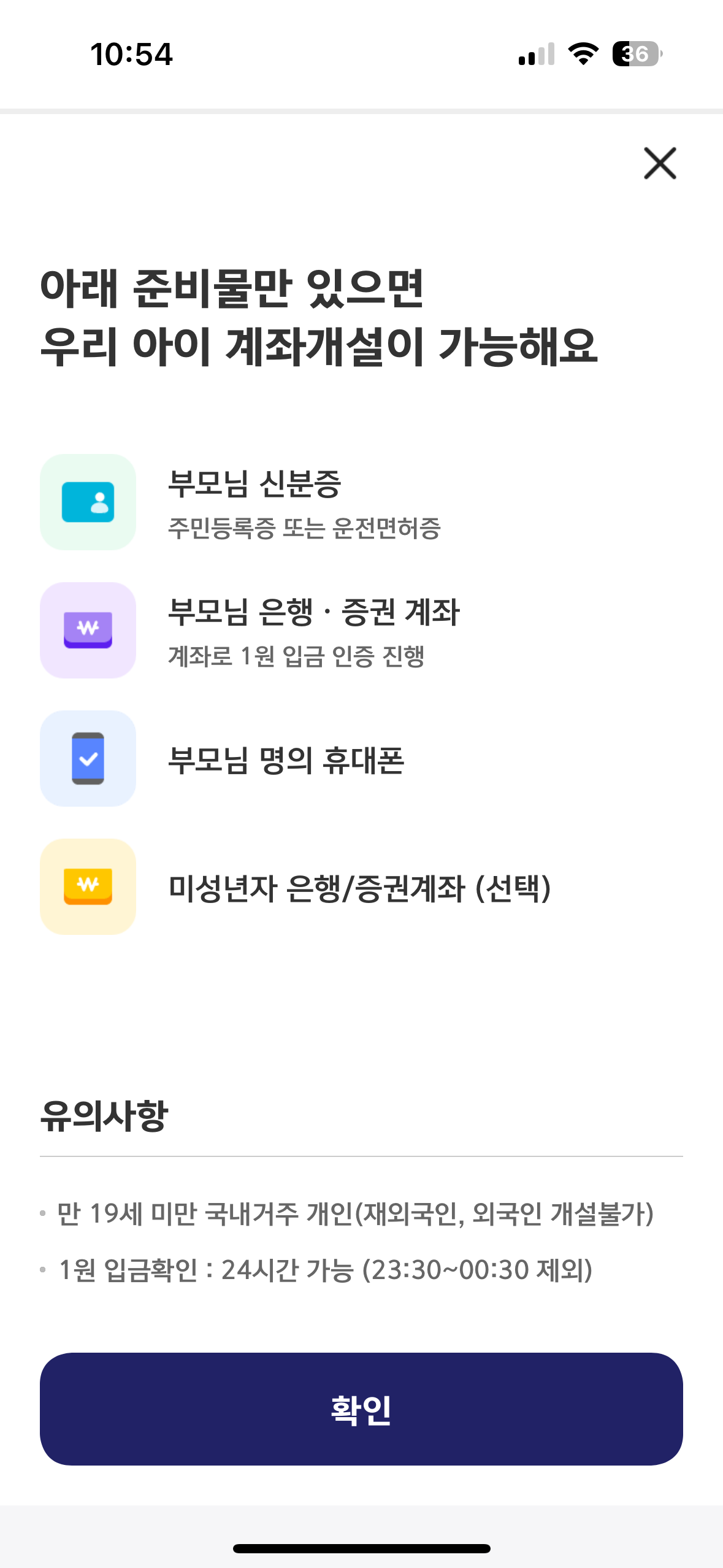 - 부모 명의 스마트폰: 본인 인증 및 앱 설치용
