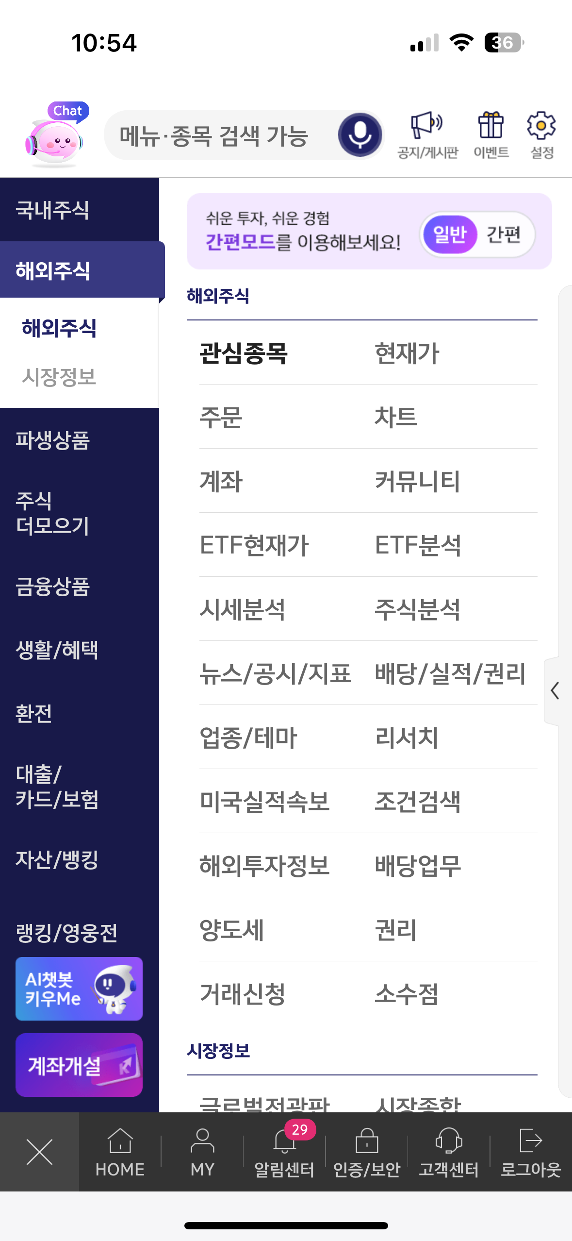 키움증권 앱 실행 → [해외주식] 메뉴 접속
